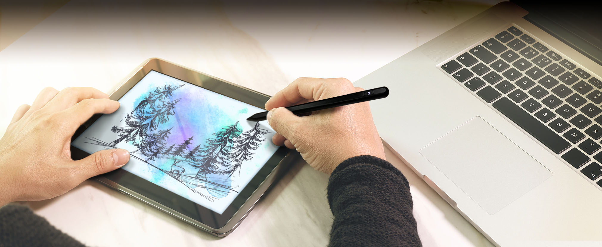 Green Pen主動式觸控筆搭配Adobe Sketch App,使圖面的流暢度、細膩度、擬真創意上更上層樓,使用內建接近現實素描的那些畫具,還有模擬水彩畫家的調色盤,畫畫新手也能愛上繪圖,用來紀錄突發的靈感,補捉感動的素描,或是思考時用來畫心智圖,手握Green Pen思緒不中斷,讓你的生活更精彩。