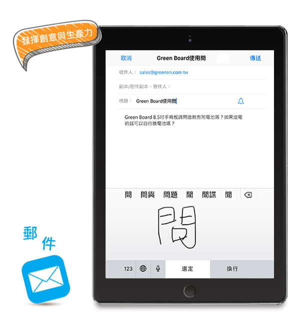 有了Green Pen,「郵件」也能創意十足。出門在外您可以隨時隨地在電子郵件上手寫注解、草圖,迅速辦公。